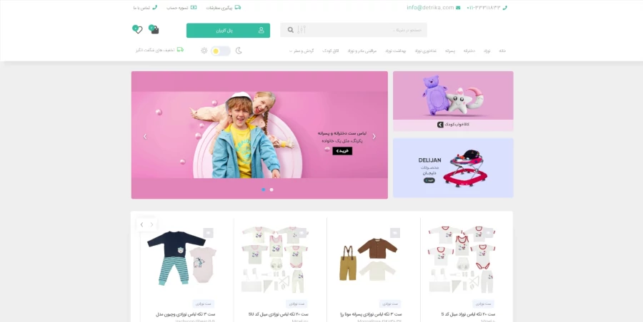 وبسایت دتریکا، متعلق به فروشگاه لباس و سیسمونی «کودک من» در شهرستان ساری است که در زمینه فروش انواع لباس نوزادی و بچهگانه، لوازم مخصوص کودک و سیسمونی فعالیت میکند. مدیران این فروشگاه بهمنظور افزایش فروش، امکان فروش به تمامی نقاط کشور، مدیریت راحتتر محصولات موجود در انبار، کاهش وابستگی به پلتفرمهای اجتماعی و… به تیم برنامهنویسی آلتالبز اعتماد کرده و طراحی و پیادهسازی فروشگاه اینترنتی خود را به ما سپردند. تیم آلتالبز، این فروشگاه را بر بستر وردپرس و با صفحهساز المنتور طراحی و پیادهسازی کرده است. همچنین پس از اتمام طراحی، بهمنظور آشنایی صاحبان این کسب و کار با نحوه مدیریت سایت، کلاسهای آموزشی حضوری برگزار شده و همچنین چندین ساعت فیلم آموزشی ضبط و در اختیار آنها قرار گرفت.