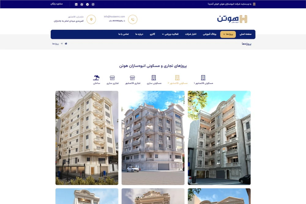 هلدینگ انبوهسازان هوتن، موفق به طراحی و پیادهسازی تعداد زیادی پروژهٔ عمرانی و ساختمانی در سطح استان مازندران شده است. مدیران این شرکت نیاز به ساختاری نظاممند جهت معرفی پروژههای ساختمانی خود داشتند؛ بنابراین تیم ما با طراحی یک Post Type اختصاصی، امکان مدیریت سادهتر پروژههای این هلدینگ را برای مدیران این شرکت فراهم آورد.